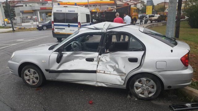 Από τη σφοδρότητα της σύγκρουσης το όχημα μετακινήθηκε και έπεσε επάνω σε παρακείμενη κολώνα φωτισμού.