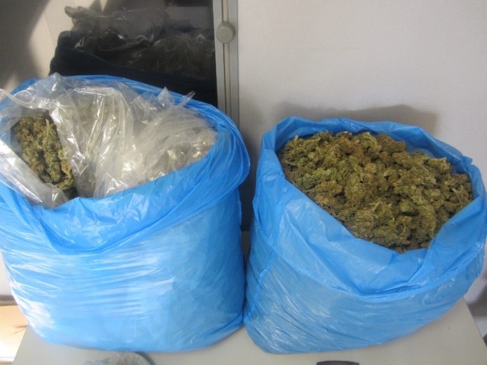 Κατασχέθηκαν πάνω από 5 κιλά ακατέργαστης κάνναβης, δύο μεταλλικοί τρίφτες κάνναβης, μικροποσότητες ναρκωτικών δισκίων και αφορολόγητου καπνού, καθώς και χρηματικό ποσό