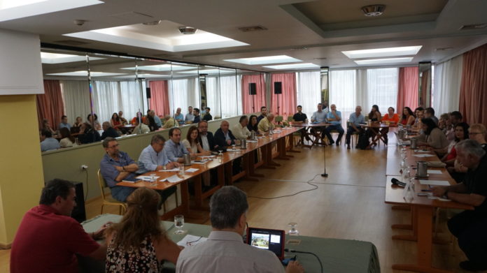 Την συζήτηση άνοιξε η πρόεδρος της Ένωσης Ξενοδόχων κα Ειρήνη Παπαϊωάννου, πλαισιωμένη από τους κκ. Αναστάσιο Γούσιο και Γιώργο Πολύζο.
