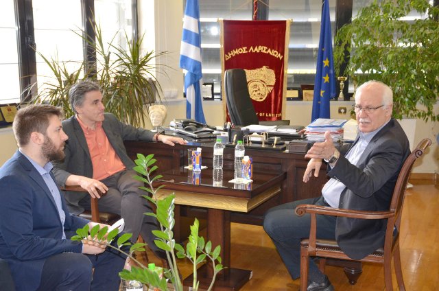 Συναντήσεις με τον δήμαρχο Λαρισαίων Απόστολο Καλογιάννη και τον περιφερειάρχη Θεσσαλίας Κώστα Αγοραστό είχε το πρωί της Παρασκευής ο υπουργός Οικονομικών Ευκλείδης Τσακαλώτος.