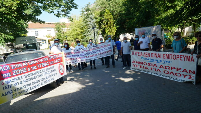 Συγκέντρωση διαμαρτυρίας από την Ένωση Ιατρών Νοσηλευτηρίων Κέντρων Υγείας Λάρισας και φορείς της πόλης πραγματοποιήθηκε το πρωί της Παρασκευής στην πύλη του Γενικού Νοσοκομείου Λάρισας, όμως το θέμα που κυριάρχησε αφορούσε στην πρόθεση αλλαγής του εφημεριακού καθεστώτος των δύο Νοσοκομείων (ΠΓΝΛ – ΓΝΛ).