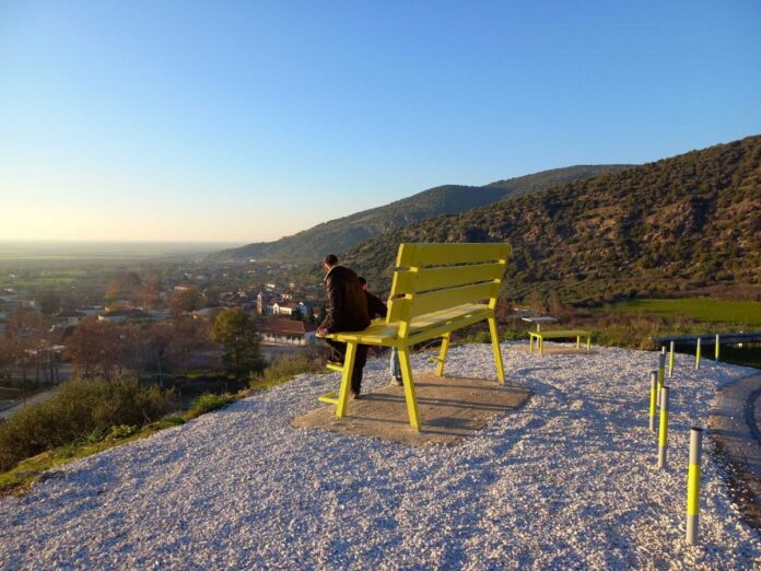 Ένα εντυπωσιακό, ψηλό και κατακίτρινο παγκάκι διαφορετικό από τα συνηθισμένα, αφού από το σημείο του βλέπει κανείς ολόκληρο το Θεσσαλικό κάμπο να «απλώνεται» στα μάτια του, στήθηκε προσφάτως στην τοποθεσία Καλαμάκι του δήμου Κιλελέρ.