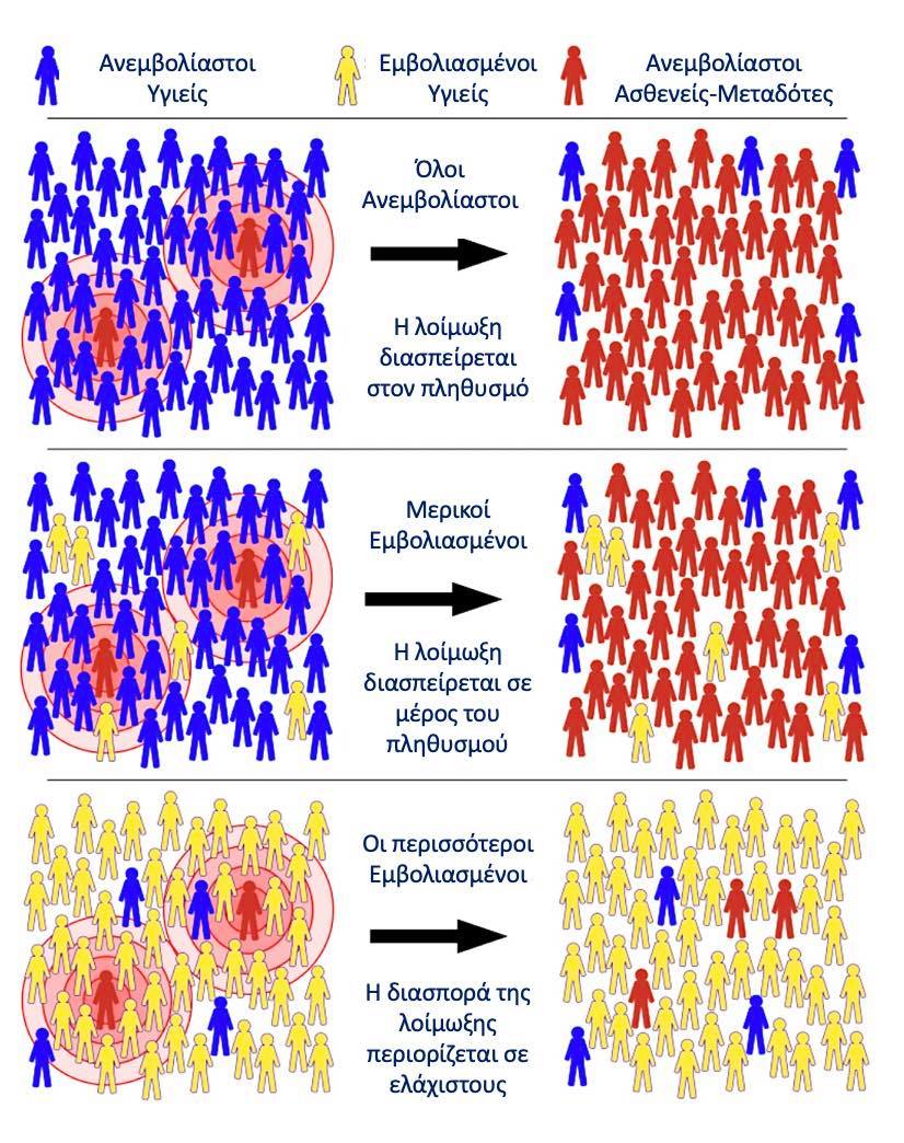Το νέο στέλεχος Δέλτα μολύνει πολύ πιο εύκολα από τα προηγούμενα και τους νέους που σημαντικό ποσοστό τους πλέον νοσεί. Οι νέοι είναι οι πιο δραστήριοι και συμβάλλουν στην διασπορά του νέου στελέχους με την απίστευτη μολυσματικοτητα του (50-70% ψηλότερη από το στέλεχος Άλφα-Μ.Βρετανία το οποίο είχε ήδη 50% ψηλότερη μολυσματικοτητα από τον αρχικό στέλεχος της Κίνας). Αυτές οι νέες συνθήκες αλλάζουν το ρίσκο/όφελος του εμβολιασμού των νέων, τόσο για τους ίδιους αλλά και για την κοινότητα. Και βέβαια το νέο στέλεχος Δέλτα απειλεί όλους τους ανεμβολιαστους, μιας και γνωρίζουμε ότι ο πλήρης εμβολιασμός (15 μέρες μετά την 2η δόση) προστατεύει κατά 95% από βαριά λοίμωξη και θάνατο από το Δέλτα στέλεχος. Δείτε στο σχήμα πως και γιατί χρειαζόμαστε 80% του γενικού πληθυσμού εμβολιασμένο!».