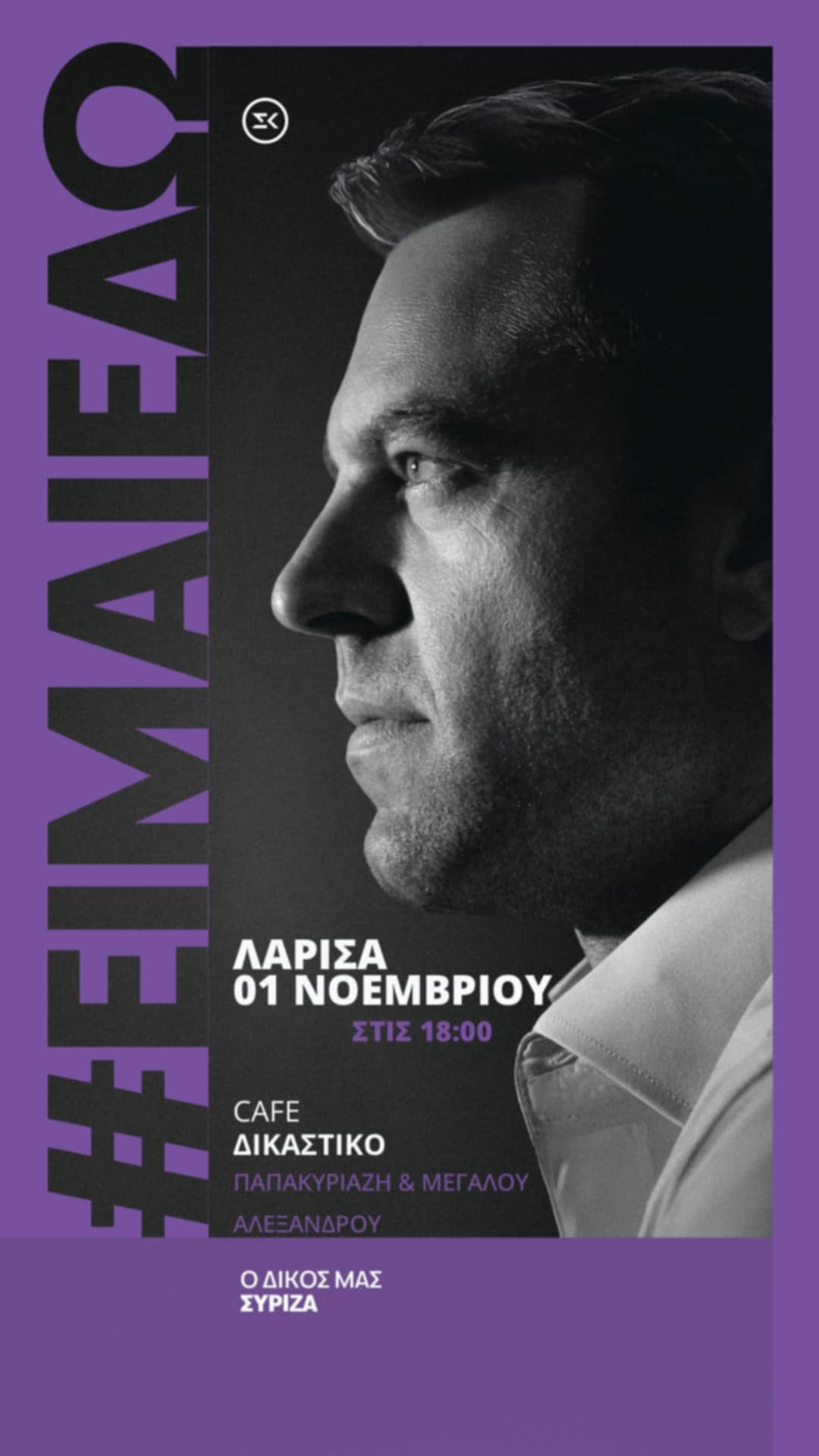 Δείτε την αφίσα για την παρουσία του Στέφανου Κασσελάκη στη Λάρισα: