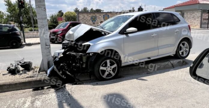 Αυτοκίνητο προσέκρουσε πάνω σε κολόνα φωτισμού το μεσημέρι της Τετάρτης λίγο μετά τη 1μ.μ. στην οδό Ηρώων Πολυτεχνείου στο ύψος της Πύλης της 1ης Στρατιάς και στο ρεύμα προς Καρδίτσης.