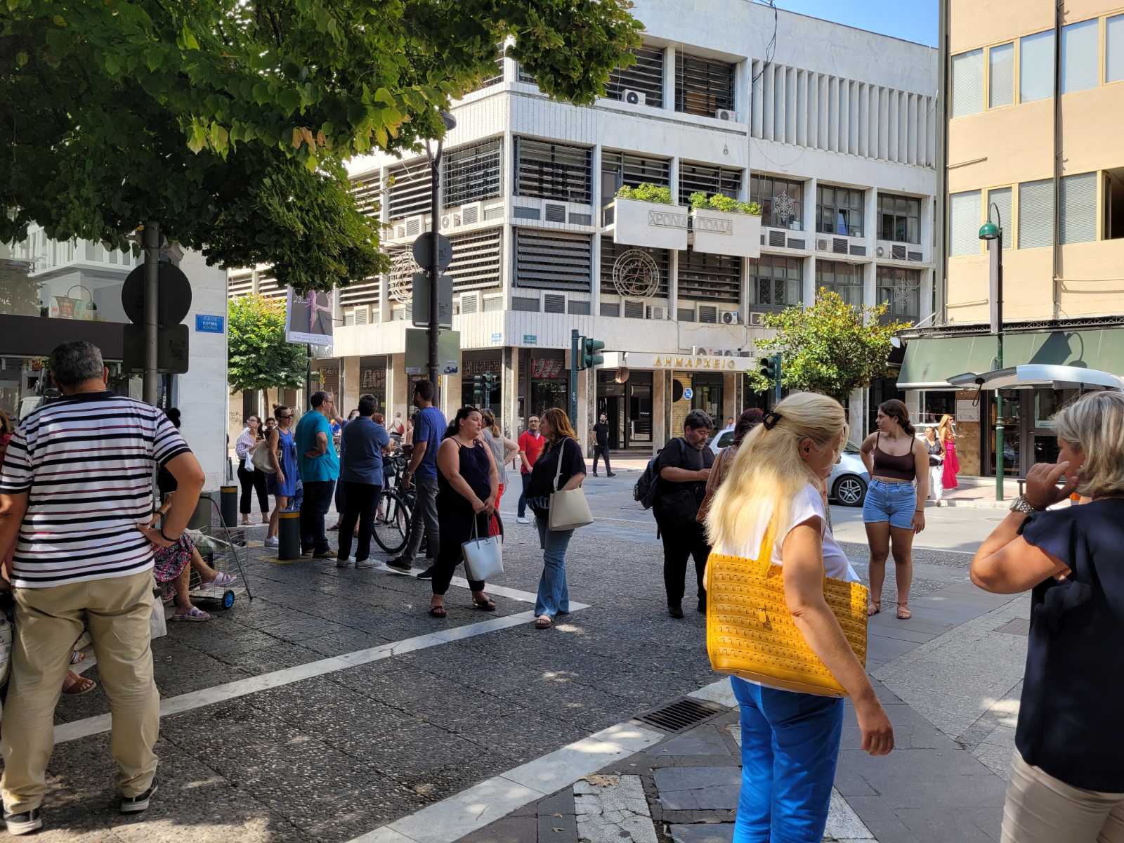 Πλήθος Λαρισαίων έσπευσε σε πλατείες, δρόμους και πεζοδρόμους, προκειμένου να αισθανθεί πιο ασφαλές. Προφανώς ξύπνησαν μνήμες από τον καταστροφικό Εγκέλαδο του 2021.