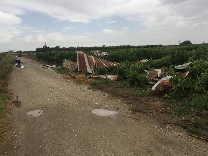 Βιβλική είναι η καταστροφή στην ευρύτερη περιοχή Τυρνάβου, Αργυροπουλίου, Δελερίων, από το μπουρίνι που συνοδευόταν από ισχυρούς ανέμους και χαλάζι, πουέριξε στάβλους, αχλαδια, ροδάκινα, αμπέλια και κατέστρεψε στο διάβα του ακόμη και παλμέτες και σκεπές από μαντριά που τις σήκωσε στον αέρα και τις έριξε σε παρακίμενα αμπέλια, όπως φαίνεται και στις ΦΩΤΟ.