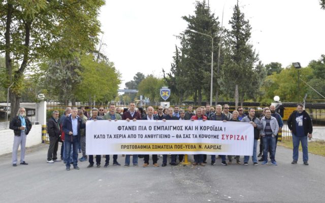 Σε δίωρο αποκλεισμό της πύλης του 303 ΠΕΒ στη Λάρισα, προχώρησαν χθες εργαζόμενοι του ΥΕΘΑ στο Νομό , στα πλαίσια των απεργιακών κινητοποιήσεων της ΠΟΕ-ΥΕΘΑ και της ΑΔΕΔΥ.