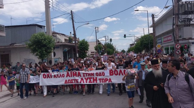 Πορεία διαμαρτυρίας πραγματοποίησαν οι κάτοικοι της οδού Βόλου, όλων των ηλικιών, ζητώντας άμεση λύση στο μεγάλο τους πρόβλημα, που είναι τα τροχαία δυστυχήματα που κοστίζουν ανθρώπινες ζωές. Κάνοντας αρχικά τρισάγιο στον τόπο που άφησε την πνοή του το τελευταίο «θύμα» στη συνέχεια με μπροστάρηδες τους νεαρούς μαθητές έκαναν πορεία κλείνοντας την οδό.