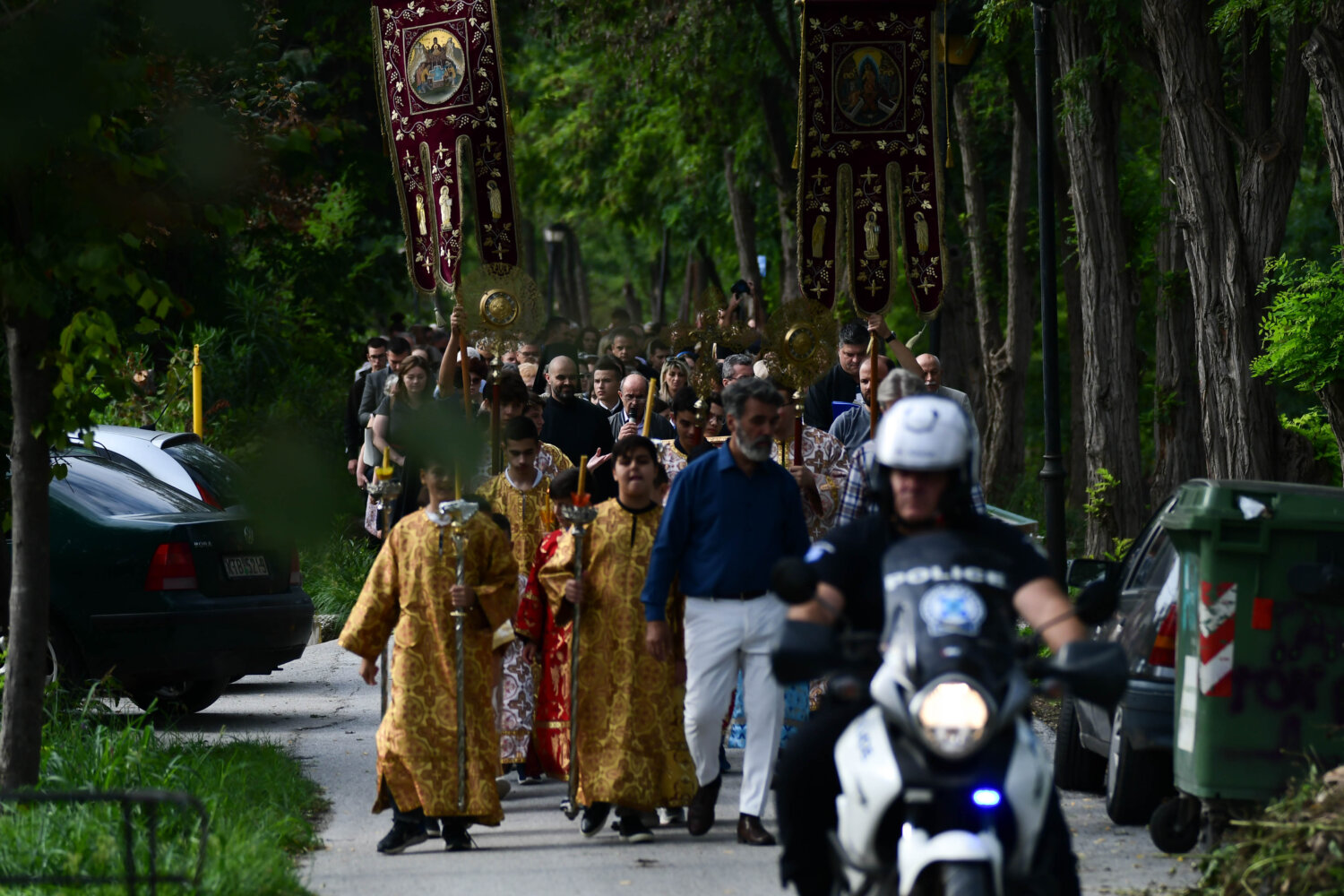 Παρουσία πλήθους κόσμου τελέστηκε σήμερα το πρωί η Ιερά Λιτανεία της θαυματουργού εικόνας της Παναγίας Ζωοδόχου Πηγής, στο ανάχωμα της συνοικίας Αμπελοκήπων.