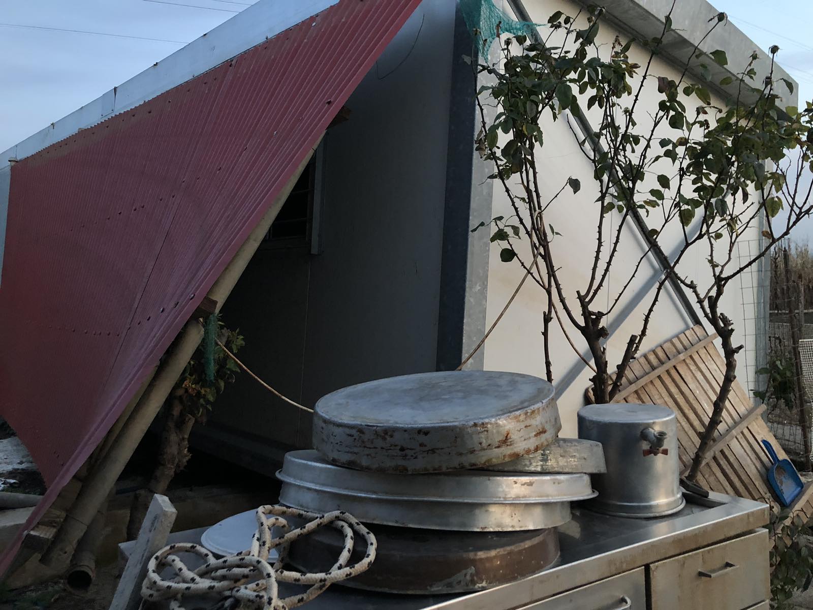 Μέχρι που ήρθε το νέο χτύπημα της μοίρας, οι πλημμύρες. «Όταν καταλάβαμε ότι πλησιάζουν με ορμή τα νερά στο χωριό μας, ήρθε ο γιος μου και με πήρε στη Λάρισα» θα μας πει: «Όταν επιστρέψαμε μόλις έφυγε το πολύ κακό, ούτε το container δεν υπήρχε στη θέση του, το είχαν παρασύρει τα νερά και το είχαν αναποδογυρίσει μερικά μέτρα πιο κάτω από το οικόπεδό μας» θα συμπληρώσει.