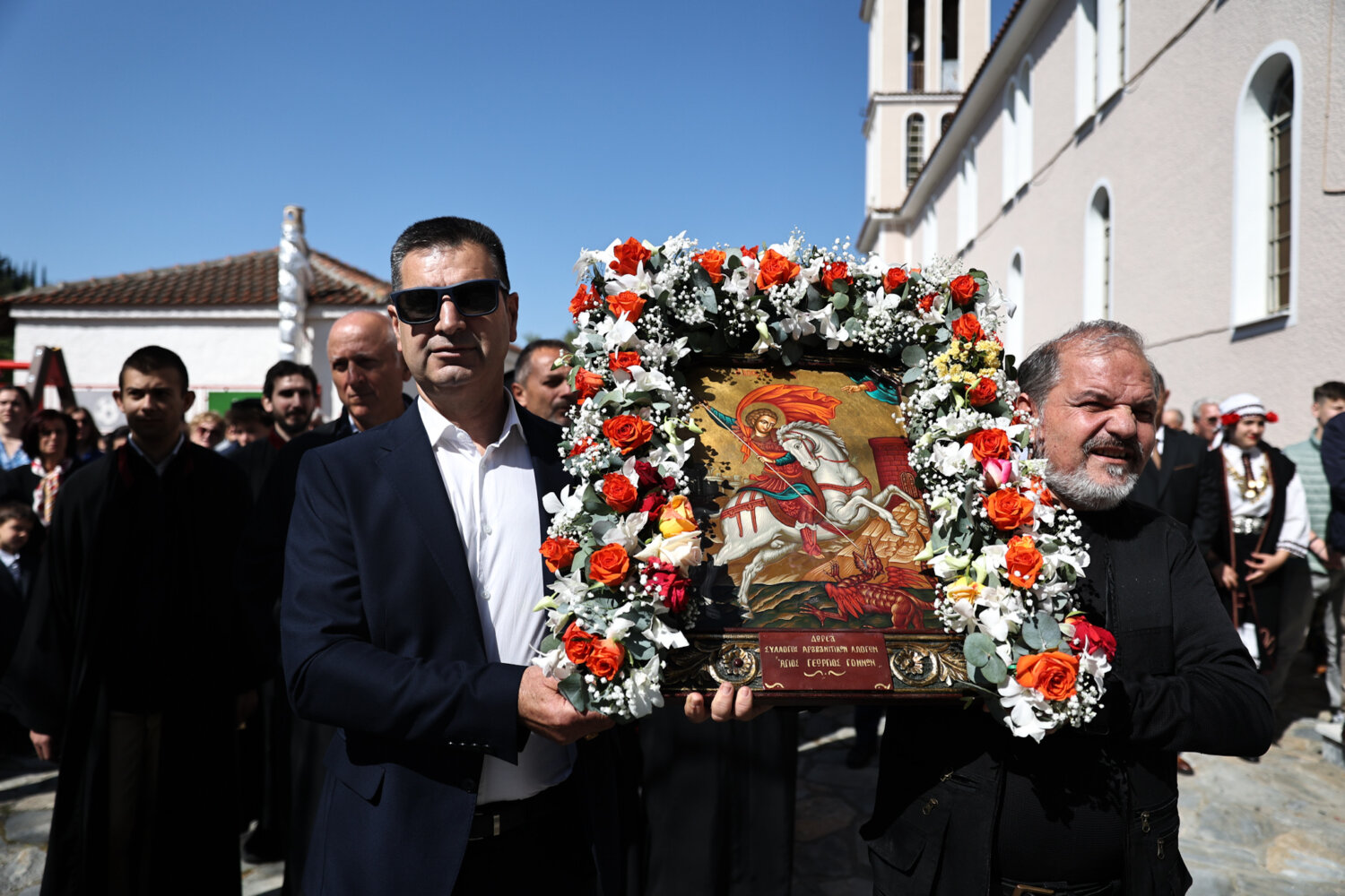 Με ιδιαίτερη λαμπρότητα εορτάστηκε ο προστάτης των Γόννων, Άγιος Γεώργιος για ακόμη μία χρονιά… Πλήθος κόσμου τίμησε τον Πολιούχο, ενώ πραγματοποιήθηκε η περιφορά της εικόνας του Αγίου με την συνοδεία του Συλλόγου Αραβανίτικων Αλόγων «Άγιος Γεώργιος» Γόννων.
