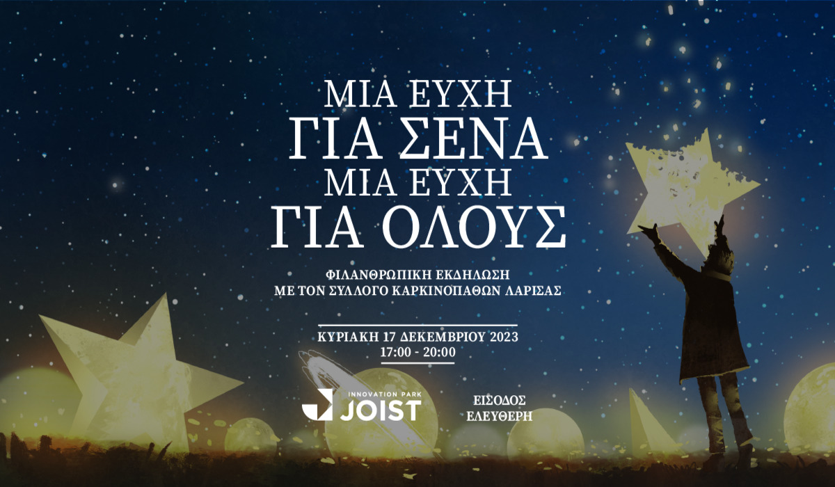 Η ομάδα του JOIST και τα μέλη του Συλλόγου Καρκινοπαθών Λάρισας στολίζουν το Χριστουγεννιάτικο δέντρο του Πάρκου Καινοτομίας και σας προσκαλούν να συμμετέχετε. Το δέντρο του JOIST θα στολιστεί με ευχές αγάπης από μικρούς και μεγάλους, την Κυριακή 17 Δεκεμβρίου στο Πάρκο Καινοτομίας JOIST, 17.00-20.00.