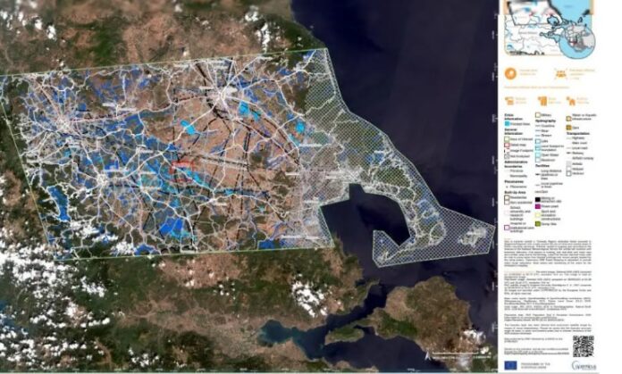 Σύμφωνα με ευρωπαϊκή υπηρεσία Copernicus, στη δορυφορική εικόνα, που ανέλυσε φαίνεται ότι η έκταση που πλημμύρισε από την κακοκαιρία Daniel «εξακολουθεί να πλήττεται σε μεγάλο βαθμό από τις πλημμύρες που προκλήθηκαν από την υπερχείλιση του ποταμού Πηνειού».