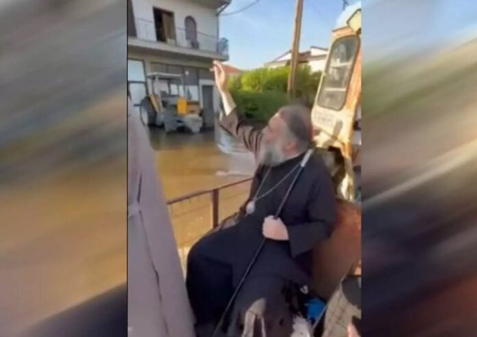 Ο Μητροπολίτης Τρίκκης Χρυσόστομος, συγκλονισμένος και εκείνος από την πρωτοφανή καταστροφή που πλήττει την επαρχία του, βγήκε στους δρόμους για να δει από κοντά τι έχει συμβεί και να βοηθήσει όπως μπορεί.