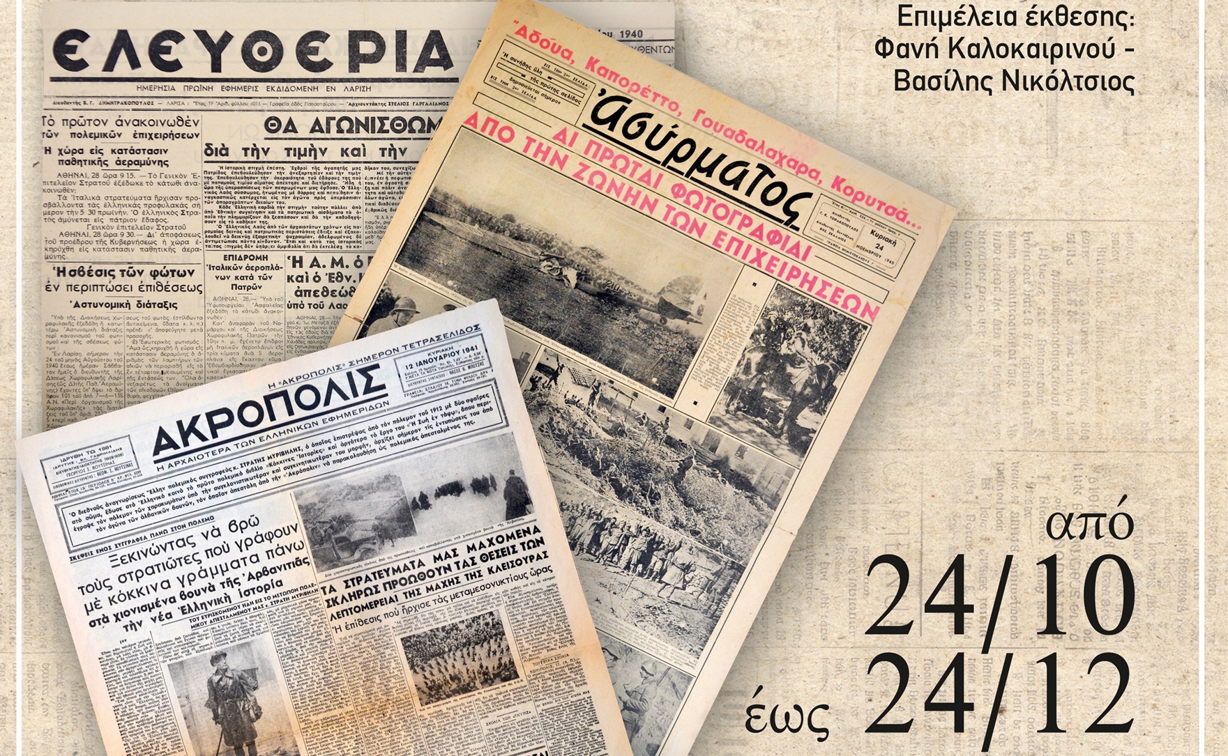 Η έκθεση εγκαινιάζεται στις 24 Οκτωβρίου 2025, στις 18.30 στο Λαογραφικό Ιστορικό Μουσείο Λάρισας – Γιώργος και Λένα Γουργιώτη και θα διαρκέσει έως τις 24 Δεκεμβρίου. Η έκθεση παρουσιάζει τον τρόπο με τον οποίο ο ελληνικός Τύπος κατέγραψε και παρουσίασε τα δραματικά γεγονότα του Οκτωβρίου του 1940 και των πρώτων μηνών του πολέμου.