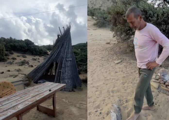 Ο Γιώργος, παρά την καταγωγή του από τα Βασιλικά Φαρσάλων της Λάρισας, βρήκε τη δική του “πατρίδα” στη Γαύδο, ζώντας σε έναν λιτό οικισμό φτιαγμένο από πέτρες και ξύλα (Δείτε στο βίντεο 1:06). Η καλύβα του, με τον μεγάλο πέτρινο μύλο για τραπέζι, θυμίζει εποχές που η επιβίωση ήταν άμεσα συνδεδεμένη με τη φύση.