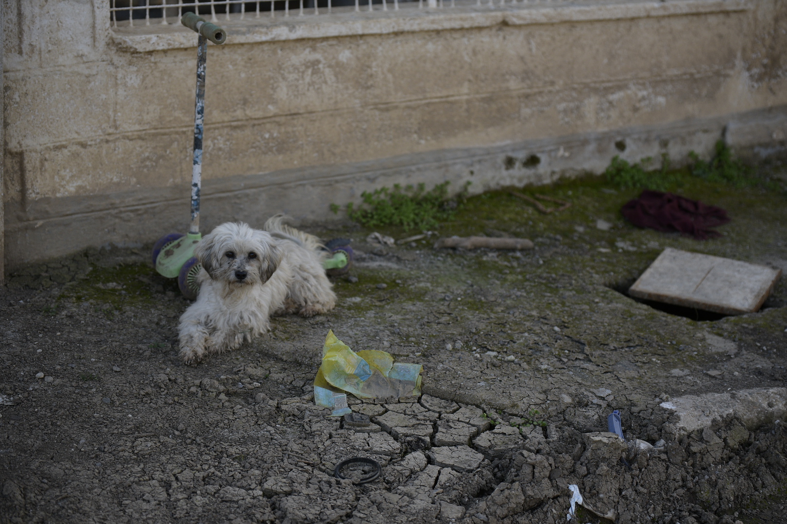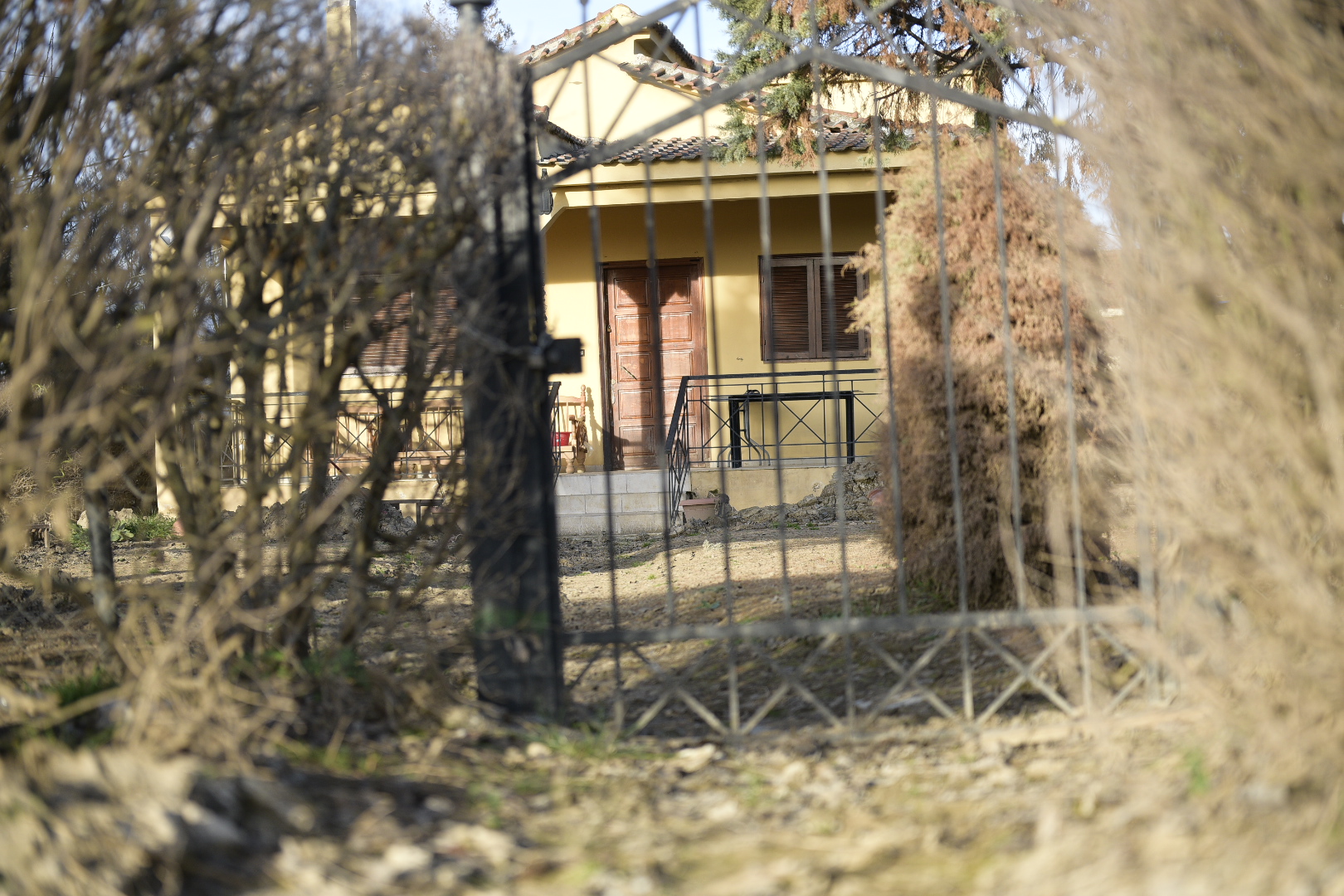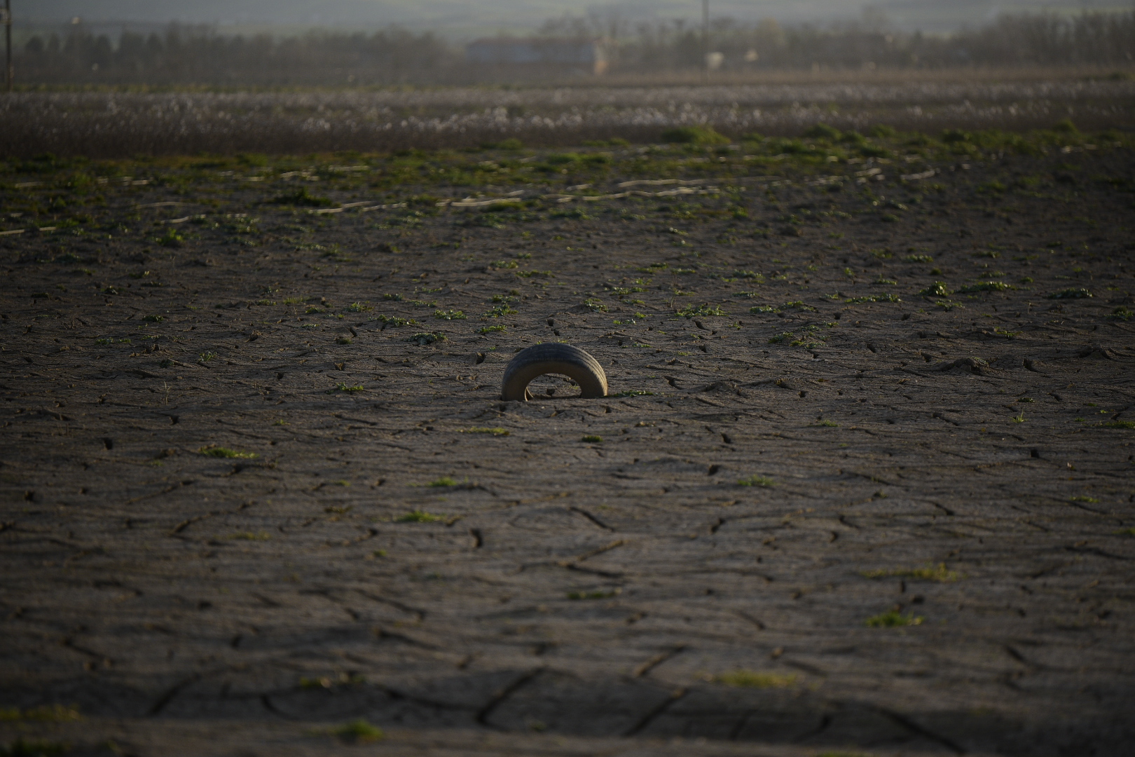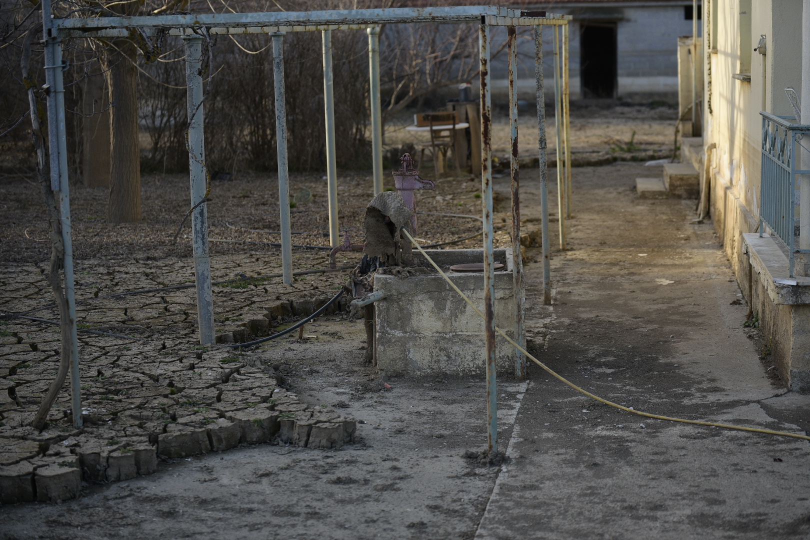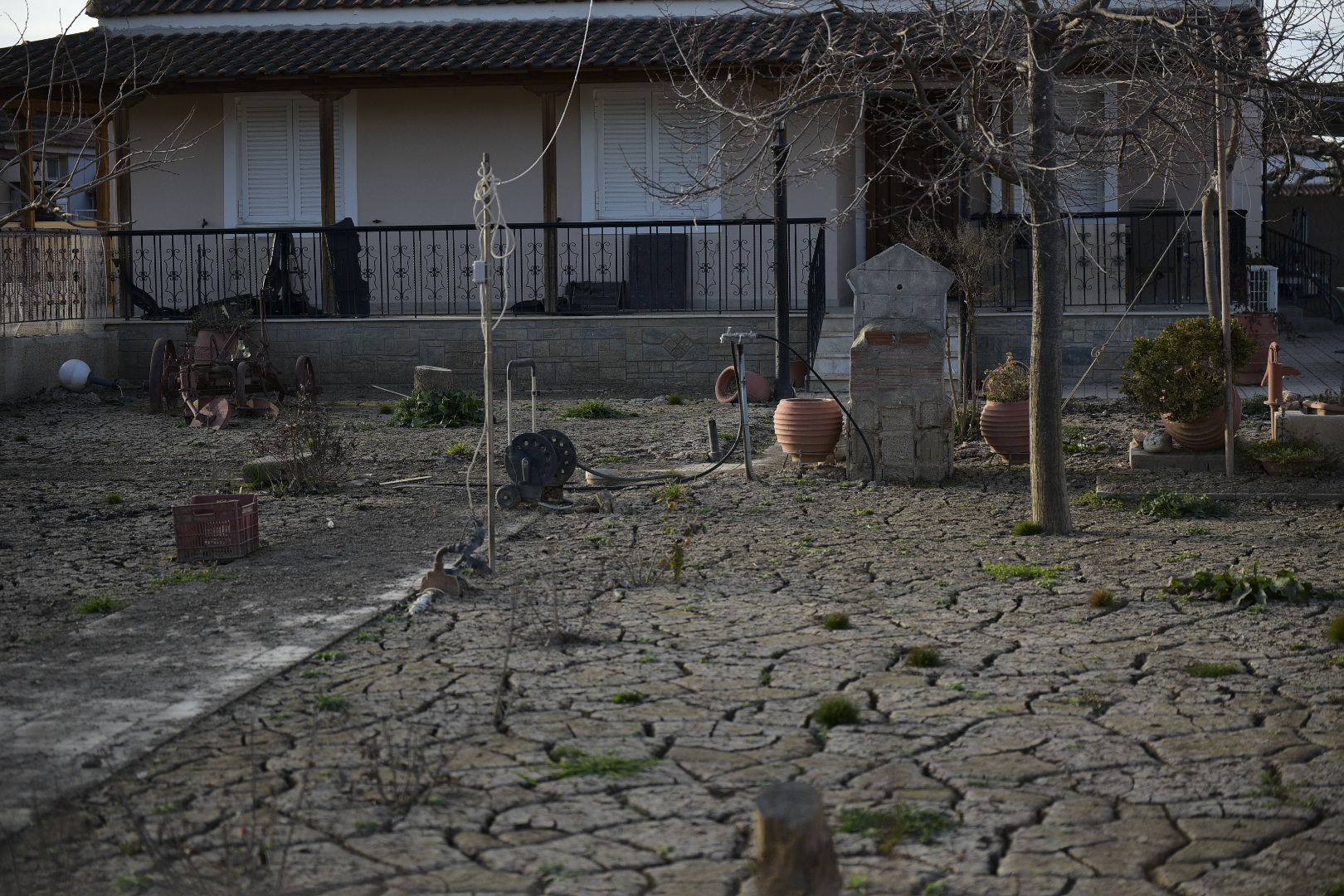 Πλησιάζουμε σε ένα σπίτι, η αυλή του οποίου αποτελείται εξ ολοκλήρου από ένα παζλ λάσπης, με κομμάτια που μοιάζουν σαν να έχουν κοπεί με μαχαίρι. Οι ιδιοκτήτες του έχουν μόλις απομακρυνθεί, αλλά μας βλέπουν από μακριά κι επιστρέφουν. «Το έδαφος είναι μια λάσπη σαν γιαούρτι», μας λενε. «Δεν μπορείς να πατήσεις, δεν προλαβαίνει να στεγνώσει». Δεν ζούνε φυσικά εκεί, έχουν μετακομίσει στη Λάρισα και επιστρέφουν πλέον στο χωριό μόνο για εργασίες.