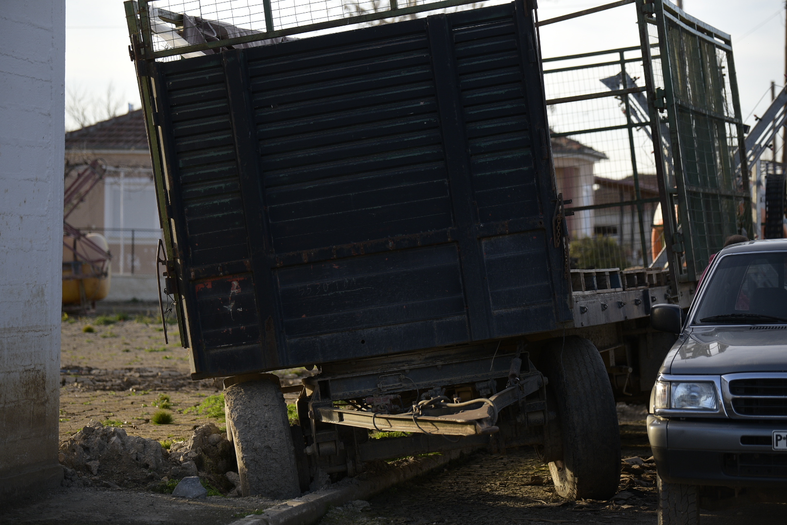 Λίγο παρακάτω ένας κάτοικος, ο κ. Διονύσης Τσιάντος, κάνει κι εκείνος εργασίες. Κοντά του βρίσκεται μια καρότσα σφηνωμένη στη λάσπη που δεν μπορεί να μετακινηθεί μέχρι και σήμερα. Ο ίδιος ζει πλέον στον Βόλο. «Κοίτα τί κατάσταση επικρατεί», μου λέει. «Αν δεν ζεστάνει καλά, να μπορούμε να δουλέψουμε… Σκέψου, ήταν ογδόντα οικογένειες κι έχουν γυρίσει οι δέκα-δώδεκα, δηλαδή τίποτα… Δυστυχώς δεν είναι παρούσα και η κυβέρνηση», σχολιάζει στη συνεχεια. «Είχε τάξει ο κ. Τριαντόπουλος τον Σεπτέμβρη ακόμα επίδομα ενοικίου, το οποίο δεν το έχουμε δει. Και άντε, εγώ έχω μία λύση, το σπίτι στον Βόλο. Ο υπόλοιπος κόσμος που έχει φύγει»;