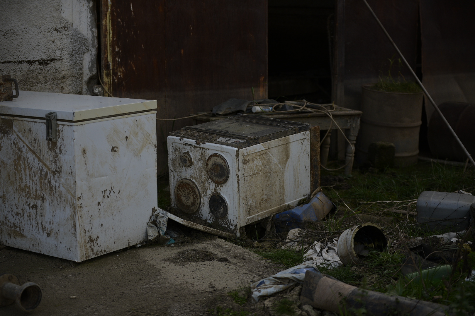 Κάνουμε μια βόλτα στις γειτονιές. Το πέρασμα του νερού διαγράφεται στους τοίχους των κτιρίων, όπου οι σκούροι λεκέδες μαρτυρούν το ύψος που είχε ανέβει κάποτε. Εκτός από εγκαταλελειμμένα αγροτικά μηχανήματα και εξαρτήματα, βλέπουμε στους δρόμους και ό,τι θα υπήρχε κανονικά μέσα σε ένα σπίτι: ηλεκτρικές συσκευές, ρούχα, παιδικά παιχνίδια.