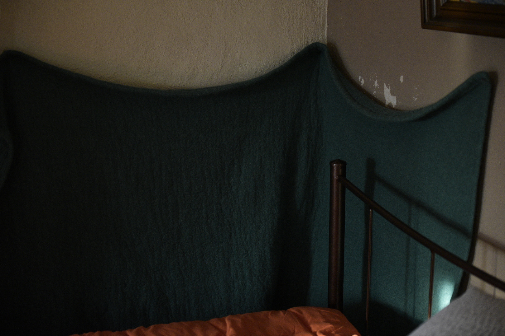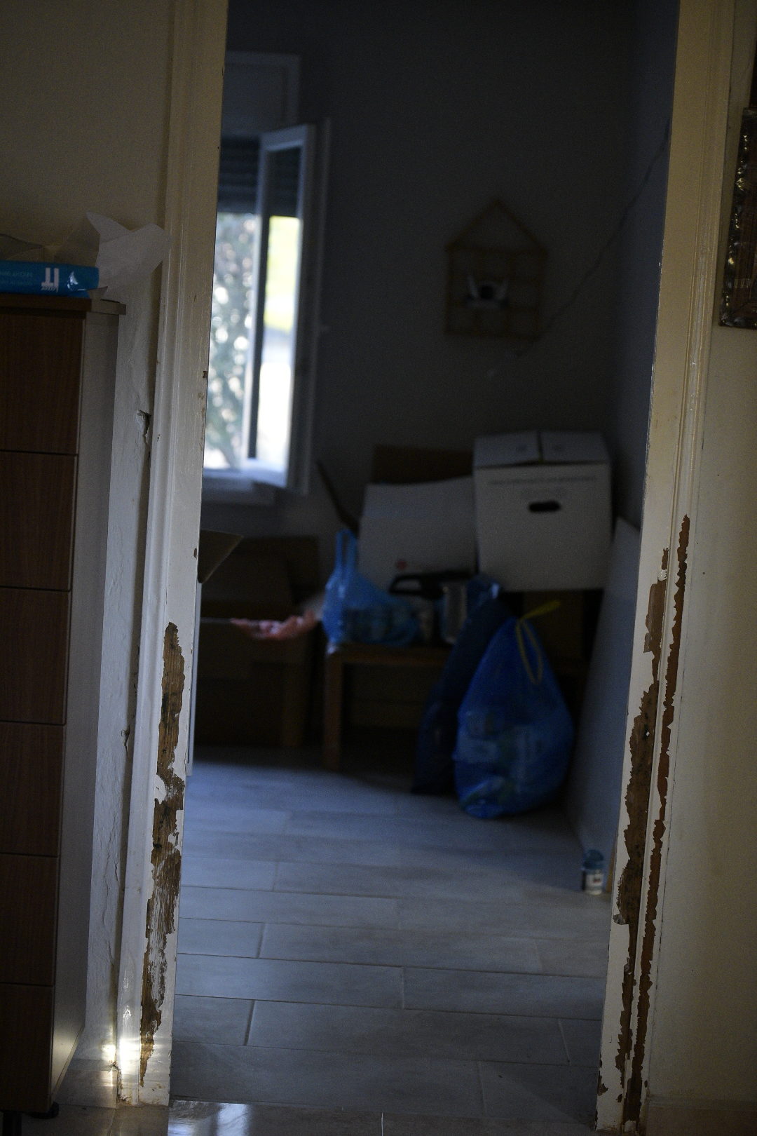 «Το ψυγείο ήταν εκεί», λέει και μου δείχνει ένα σημείο άσχετο με την αρχική του θέση. «Το βρήκα την πρώτη φορά κάπου εδώ πέρα σφηνωμένο και τη δεύτερη φορά το βρήκα στην άκρη, είχε βγει από την πρίζα. Πλημμυρήσαμε δύο φορές. Στην πρώτη είχα 1,20, στη δεύτερη 60 πόντους νερό. Κι από εκεί σκαμμένο είναι, έχω βάλει την κουβέρτα», αναφέρει, δείχνοντάς μου μια γωνία δίπλα στο κρεβάτι, με τα σημάδια στον σκαμμένο τοίχο να διακρίνονται από κάτω.
