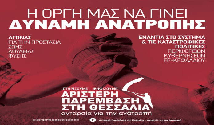 Σε ανακοίνωση της παράταξης «Αριστερή Παρέμβαση στη Θεσσαλία – Ανταρσία για την Ανατροπή» επισημαίνονται τα εξής: