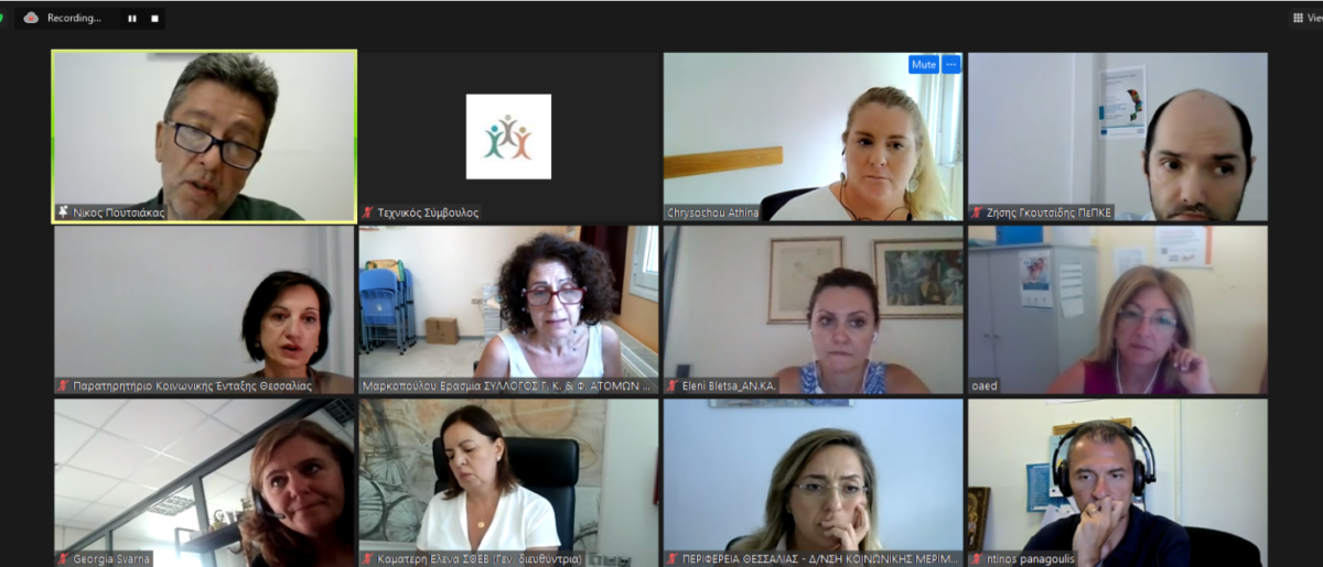 Το Περιφερειακό Παρατηρητήριο Κοινωνικής Ένταξης Θεσσαλίας (ΠεΠΚΕ) ολοκλήρωσε τον πρώτο κύκλο συναντήσεων των θεματικών ομάδων διαβούλευσης με τη διενέργεια των διαδικτυακών διαδικασιών διαβούλευσης για την κοινωνική ένταξη, με στόχο την ανάδειξη των τοπικών αναγκών σε θέματα κοινωνικής προστασίας, πρόνοιας και αλληλεγγύης καθώς και τη διαμόρφωση προτάσεων κοινωνικής πολιτικής για την αντιμετώπισή τους. Στις συναντήσεις αυτές κατατέθηκαν κείμενα βάσης από τους υπευθύνους των θεματικών ομάδων και συζητήθηκαν από τα μέλη κάθε ομάδας.