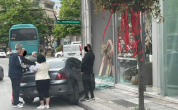Αυτοκίνητο έπεσε σε τζαμαρία καταστήματος