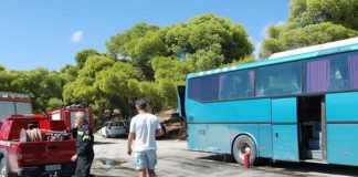 Πυρκαγιά σε λεωφορείο στην εθνική οδό έξω από τη Λάρισα