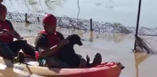 Η στιγμή που η Πυροσβεστική απεγκλωβίζει ένα σκυλί από την πλημμύρα...