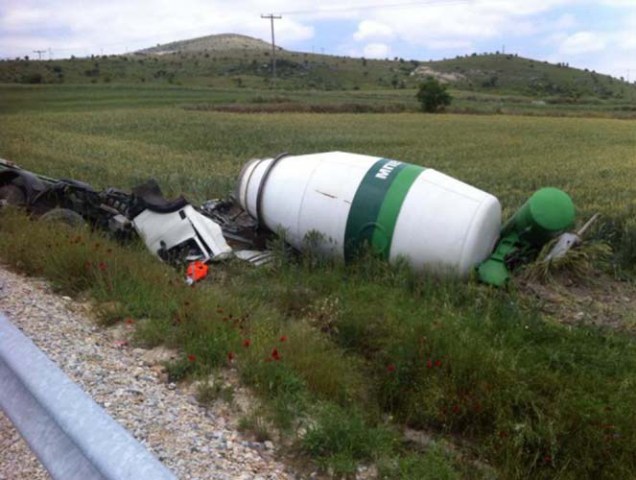 Μπετονιέρα ανατράπηκε στον κόμβο Συκουρίου στην ΠΑΘΕ