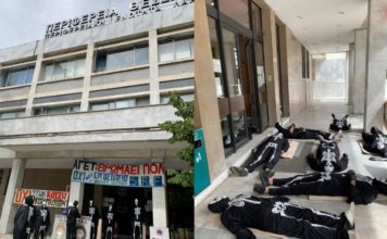 Με στολές …σκελετών, έξω απ΄ την Περιφέρεια Θεσσαλίας (βίντεο)