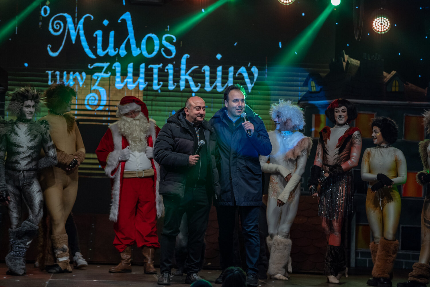 Ο Υπουργός Ψηφιακής Διακυβέρνησης Δημήτρης Παπαστεργίου και ο Δήμαρχος Τρικκαίων Νίκος Σακκάς χαιρέτισαν το πολυπληθές κοινό, αναφέρθηκαν στις όμορφες στιγμές και στις δεκάδες συγκινήσεις που κρύβει φέτος ο Μύλος των Ξωτικών.