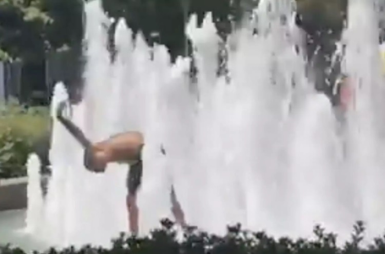 Ο καύσωνας δοκιμάζει τη Λάρισα, με μικρούς και μεγάλους να αναζητούν ανάσες δροσιάς. Ένας νεαρός αποφάσισε να κάνει βουτιά σε σιντριβάνι…