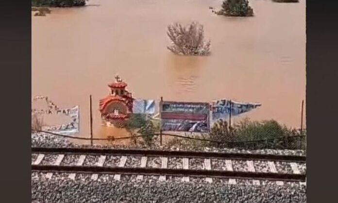 Στο σημείο που σημειώθηκε η σιδηροδρομική τραγωδία με τους 57 νεκρούς στα Τέμπη, έφτασαν τα νερά από τον υπερχειλισμένο Πηνειό.