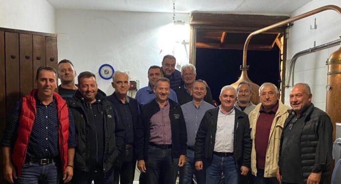 Το ετήσιο ραντεβού με την παράδοση και τη μακρόχρονη ιστορία της παραδοσιακής απόσταξης τσίπουρου, έδωσαν για μια ακόμη χρονιά στελέχη της Προοδευτικής Αγροτικής Κίνησης (ΠΑΚ) Θεσσαλίας, τα οποία συναντήθηκαν χθες το βράδυ στο αποστακτήριο που διατηρεί στο Λόφο Ελασσόνας, ο αντιπρόεδρος της αγροτικής κίνησης για την Π.Ε. Λάρισας και αντιπρόεδρος του Συλλόγου Αμβυκούχων επαρχίας Ελασσόνας κ. Χρήστος Παπαδημητρίου, παρουσία του προέδρου της ΠΑΚ Θεσσαλίας κ. Χρήστου Αθανασιάδη και των νέων Αντιπεριφερειαρχών, με την παράταξη του νέου Περιφερειάρχη Θεσσαλίας κ. Δημήτρη Κουρέτα, κ.κ. Κώστα Τέλιο από Καρδίτσα και Βαγγέλη Αποστόλου από Λάρισα καθώς και του μέλους του Δ.Σ. του Εμπορικού Συλλόγου Ελασσόνας κ. Θεόδωρου Παναγιωτίδη.