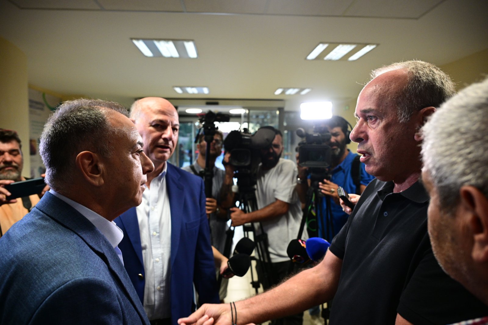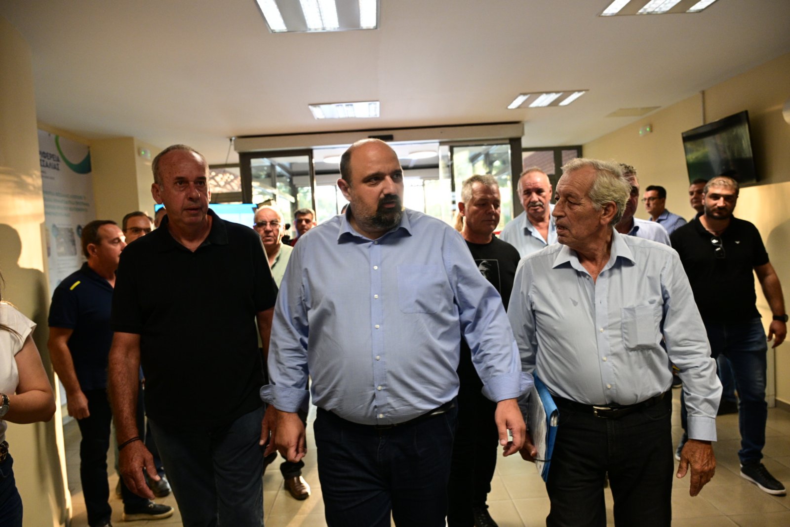 Νωρίτερα το απόγευμα της Παρασκευής παραγωγοί ξεκίνησαν με τα αυτοκίνητά τους από την Αγιά, ενώ το κτίριο «φρουρούν» ισχυρές αστυνομικές δυνάμεις.