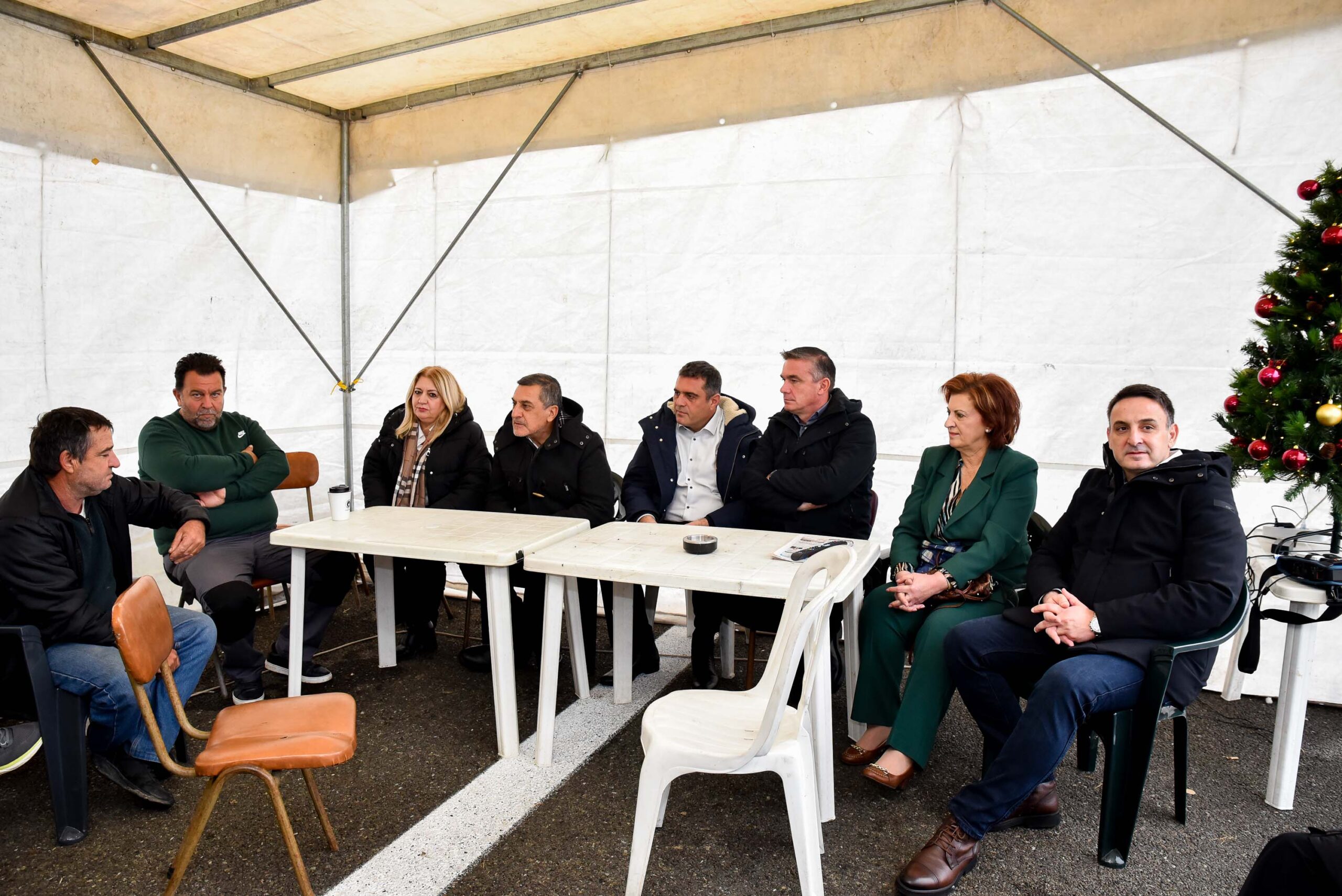 Από την πλευρά των αγροτών και των κτηνοτρόφων , εκ μέρους όλων, ο κ. Κώστας Κοκκούλης ευχαρίστησε τον Περιφερειάρχη για την παρουσία και τη διαρκή του στήριξη, τονίζοντας ότι είναι ο πρώτος που επισκέπτεται το σημείο των κινητοποιήσεων. Ζήτησε να συνεχιστεί η πίεση προς την κυβέρνηση, σε ότι αφορά τα βασικά αιτήματα ενώ αναφερόμενος ειδικότερα στους κτηνοτρόφους επισήμανε ότι όσοι επλήγησαν από τον «Daniel», την ευλογιά και την πανώλη βρίσκονται χωρίς εισόδημα και εκτός ουσιαστικών αποζημιώσεων. Τόνισε ότι πολλοί παραγωγοί έχασαν το σύνολο του ζωικού τους κεφαλαίου χωρίς να υπάρξει επαρκής στήριξη, χαρακτηρίζοντας τις μέχρι σήμερα ανακοινώσεις για αποζημιώσεις από τον Πρωθυπουργό «ψίχουλα».
