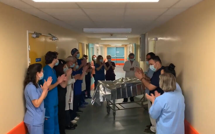 Γιατροί και νοσηλευτές εξέφρασαν την ικανοποίηση τους με χειροκροτήματα, την ώρα που ο ασθενής έβγαινε από την ΜΕΘ, καθώς πρόκειται για καλή εξέλιξη σχετικά την πορεία της υγείας τόσο του ίδιου του ασθενή όσο και των υπολοίπων που δίνουν την μάχη με τον ιό.