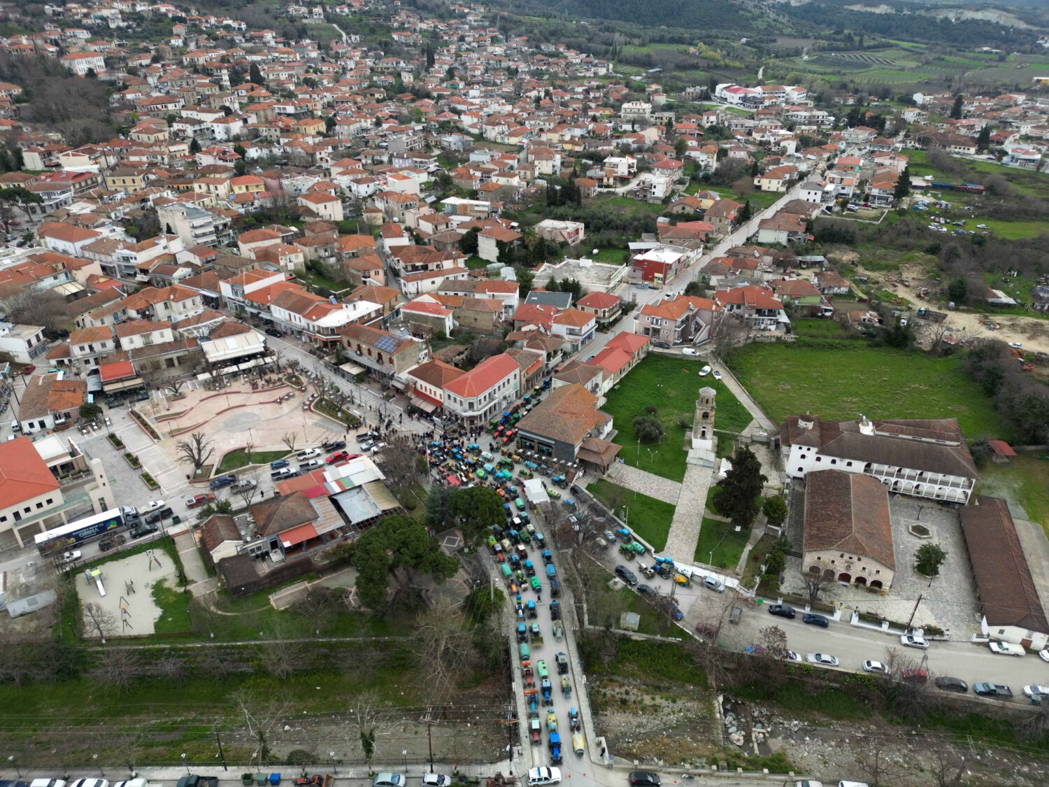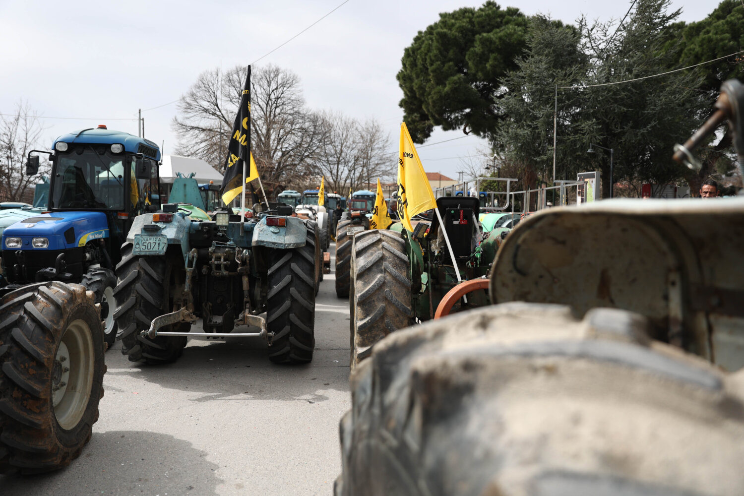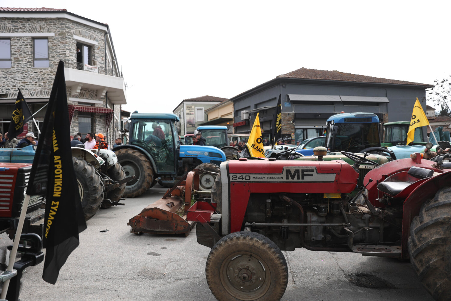 Μεγάλο αγροτικό συλλαλητήριο πραγματοποιήθηκε το πρωί της Δευτέρας στο κέντρο της Αγιάς με τη συμμετοχή δεκάδων τρακτέρ που έκλεισαν τον κεντρικό δρόμο μπροστά από την πλατεία.