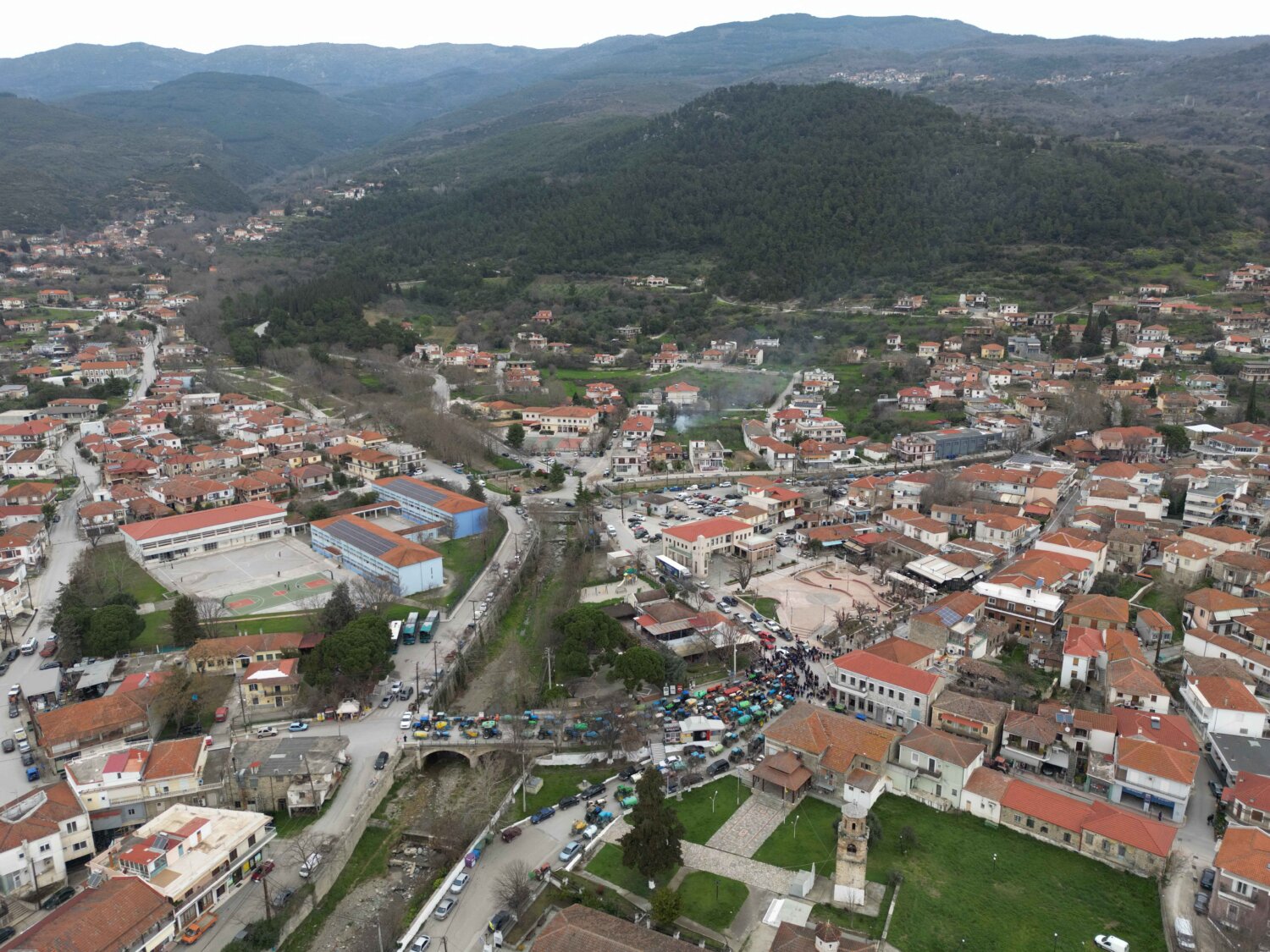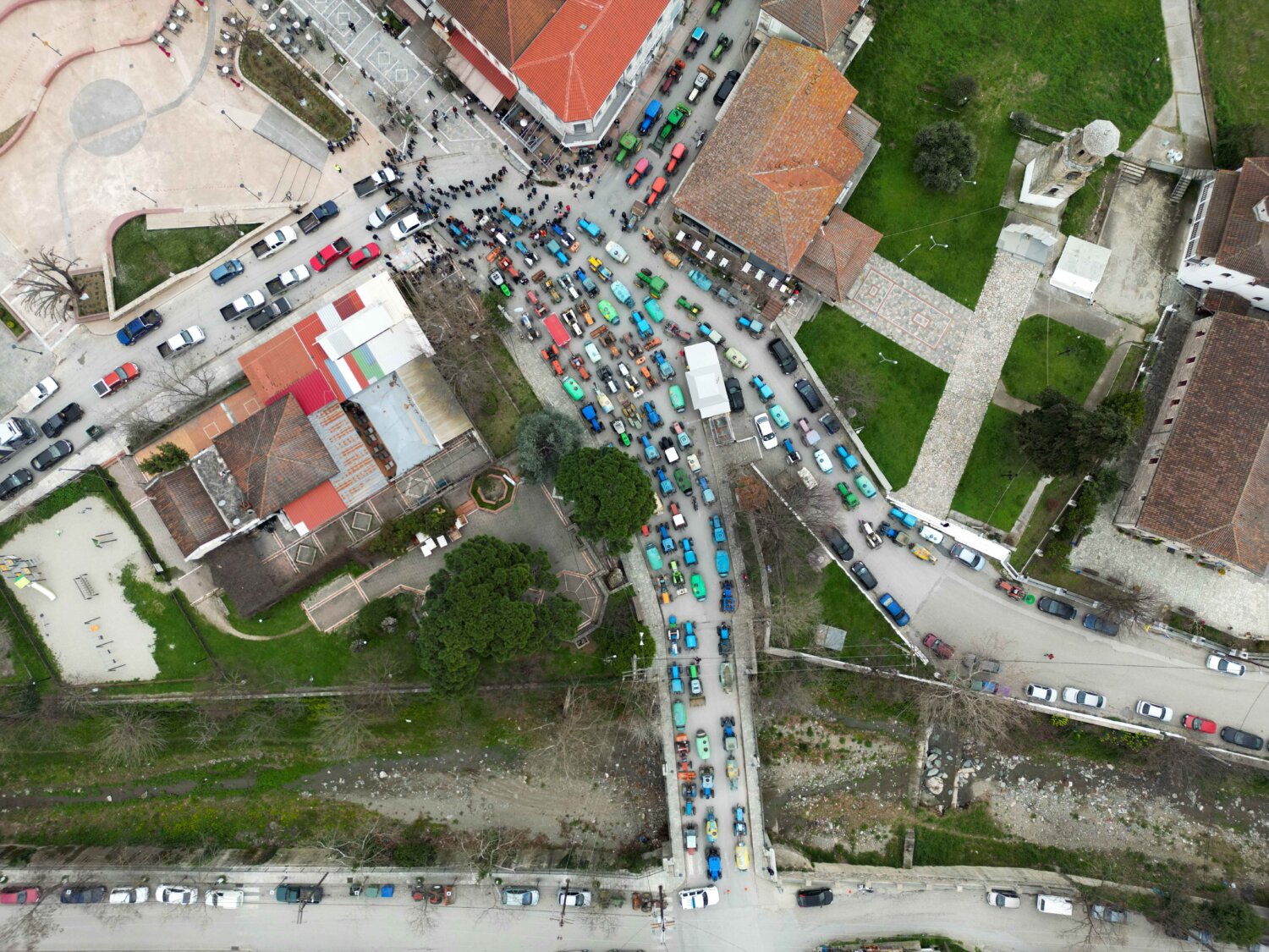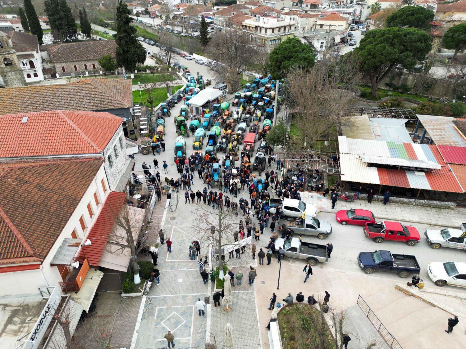 Μεγάλο αγροτικό συλλαλητήριο πραγματοποιήθηκε το πρωί της Δευτέρας στο κέντρο της Αγιάς με τη συμμετοχή δεκάδων τρακτέρ που έκλεισαν τον κεντρικό δρόμο μπροστά από την πλατεία.