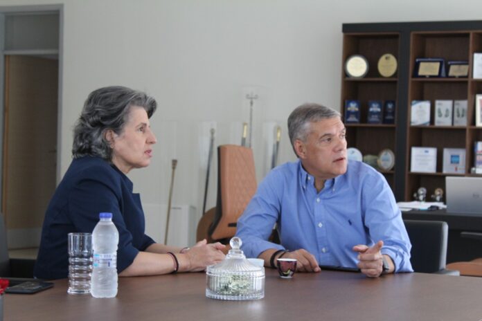 Την Γενική Γραμματέα Αγροτικής Ανάπτυξης Χριστιάνα Καλογήρου υποδέχτηκε στο γραφείο στο νέο Διοικητήριο της Περιφέρειας Θεσσαλίας στη Λάρισα ο Περιφερειάρχης Κώστας Αγοραστός.