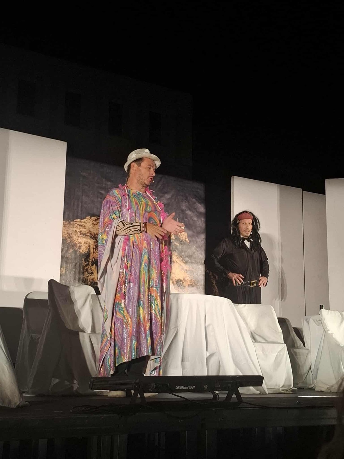 Στη σκηνή ανέβηκαν οι αγαπημένοι ηθοποιοί Σταύρος Νικολαΐδης και Βασίλης Κούκουρας, χαρίζοντας απίστευτες στιγμές γέλιου μέσα από τις ανατρεπτικές καταστάσεις και τις ευρηματικές ατάκες του έργου. Ο Δημήτρης Χριστοφορίδης ενσάρκωσε έναν ρόλο-έκπληξη, ενώ η ραδιοφωνική συμμετοχή της Κατερίνας Ζαρίφη πρόσθεσε μια ιδιαίτερη νότα στο ήδη ξεκαρδιστικό αποτέλεσμα.