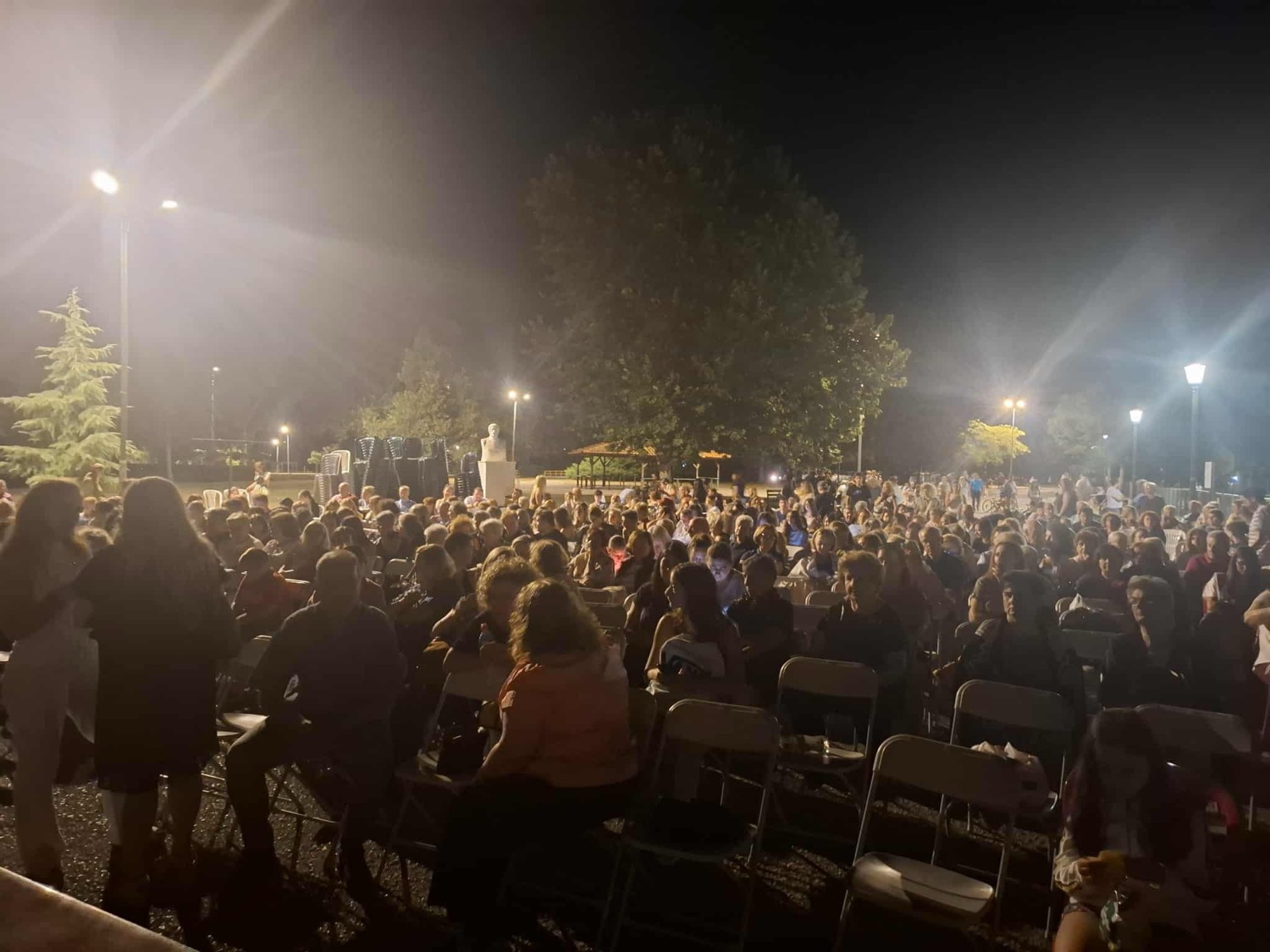 Από νωρίς ο χώρος πλημμύρισε από θεατές, που έσπευσαν να απολαύσουν τη μοναδική αυτή παράσταση στο πλαίσιο του Πολιτιστικού Αυγούστου του Δήμου Φαρσάλων. Το κοινό κατέκλυσε κάθε διαθέσιμη θέση, δημιουργώντας μια ζεστή και γιορτινή ατμόσφαιρα.