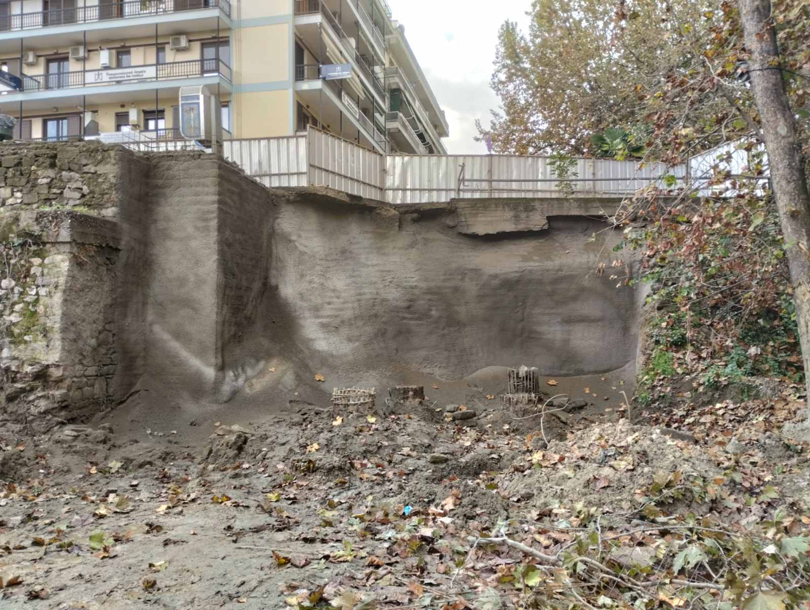 Στη μεν πρώτη ολοκληρώθηκε η ενίσχυση του ακρόβαθρου προς την οδό Οθωνος με εκτοξευμένο σκυρόδεμα, για πρόσθετη στήριξη.