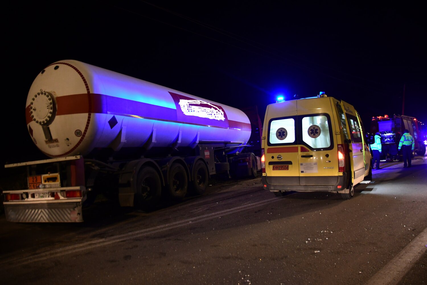 Στο σημείο έσπευσαν δυνάμεις του ΕΚΑΒ, της Πυροσβεστικής και της Αστυνομίας. Το βυτιοφόρο φέρεται να μετέφερε υγραέριο. Ο οδηγός του βυτιοφόρου συνελήφθη για να αφεθεί στη συνέχεια ελεύθερος. Στο πλαίσιο της διερεύνησης των συνθηκών του τροχαίου δυστυχήματος κρίθηκε αναγκαία η διενέργεια ιατροδικαστικής εξέτασης.