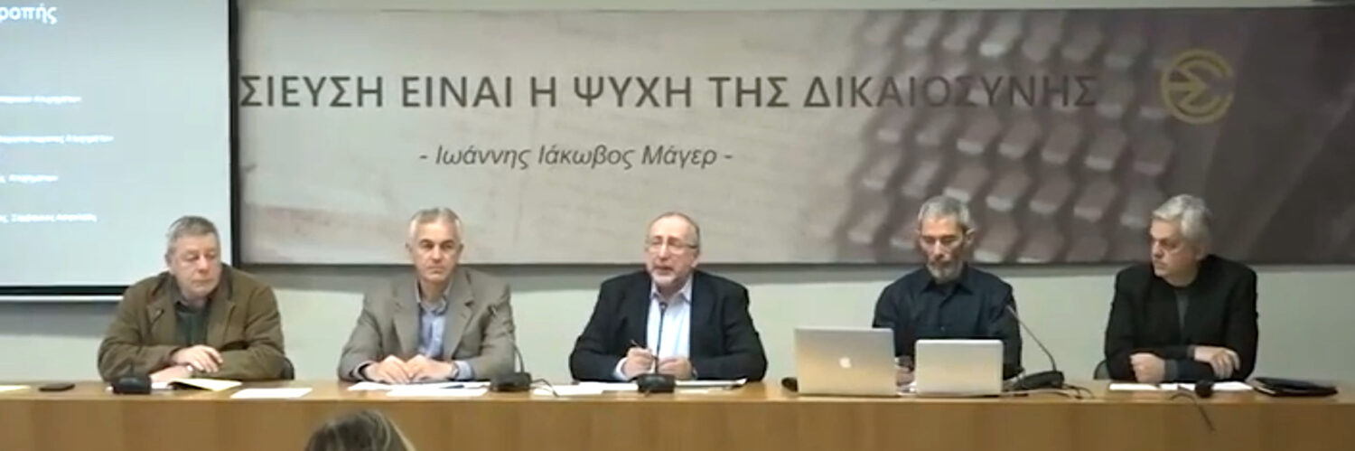 Τον περασμένο Αύγουστο στο Μέγαρο της ΕΣΗΕΑ οι πέντε πραγματογνώμονες ανακοινώνουν τα συμπεράσματα από το πόρισμά τους για το σιδηροδρομικό δυστύχημα.