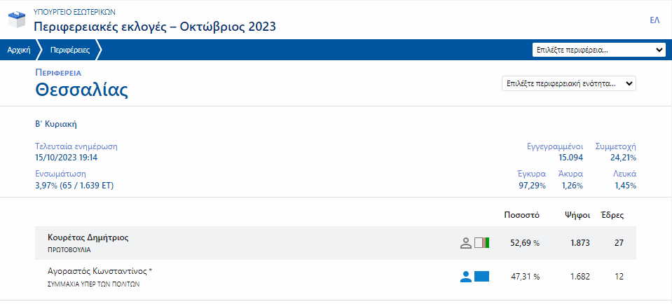 Το πρώτο αποτέλεσμα στο υπουργείο Εσωτερικών με την ενσωμάτωση να έχει φτάσει στο 3.97% είναι το ακόλουθο: