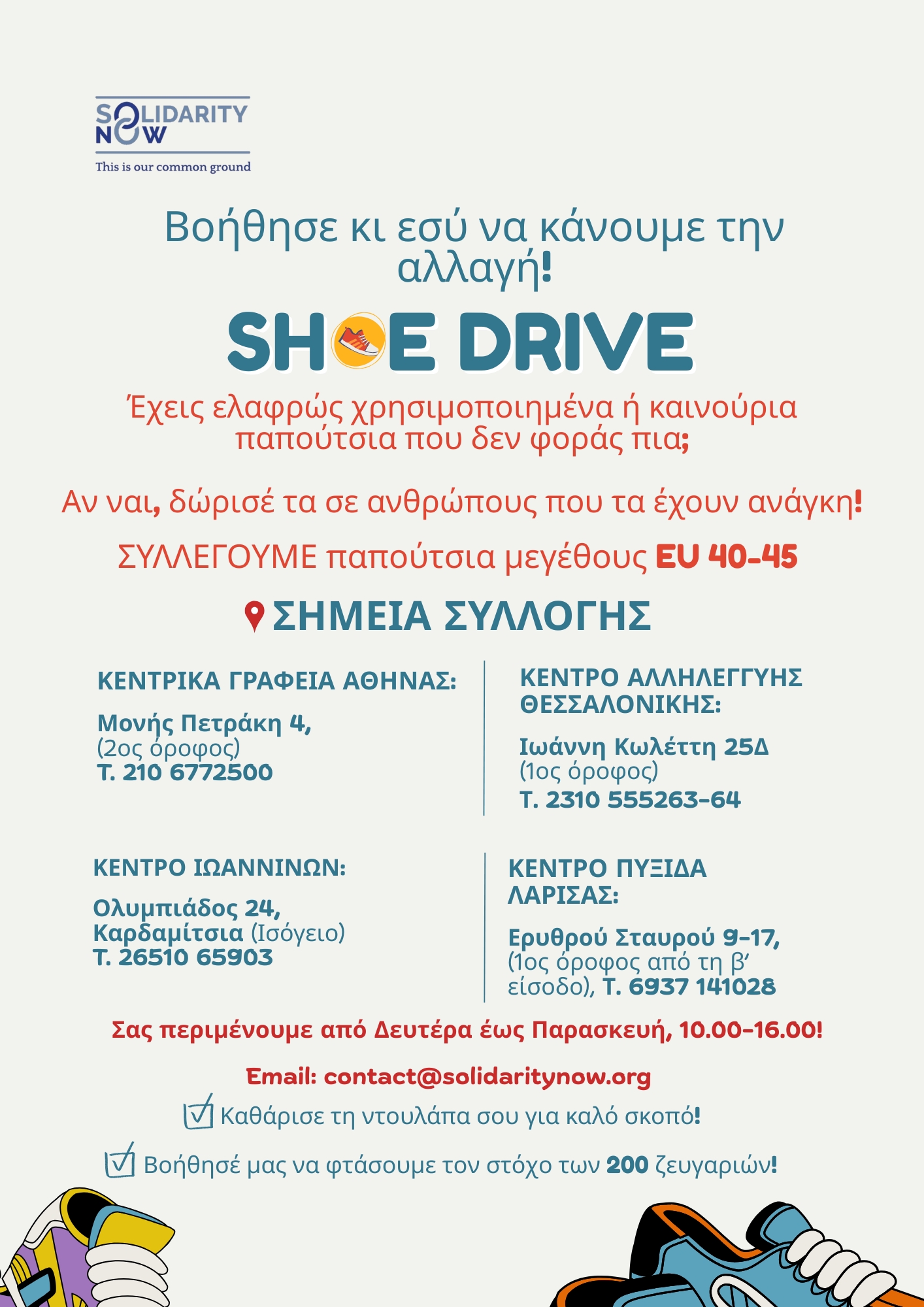 Καθαρίστε τη ντουλάπα σας για καλό σκοπό!Βοηθήστε μας να φτάσουμε τον στόχο των 200 ζευγαριών.