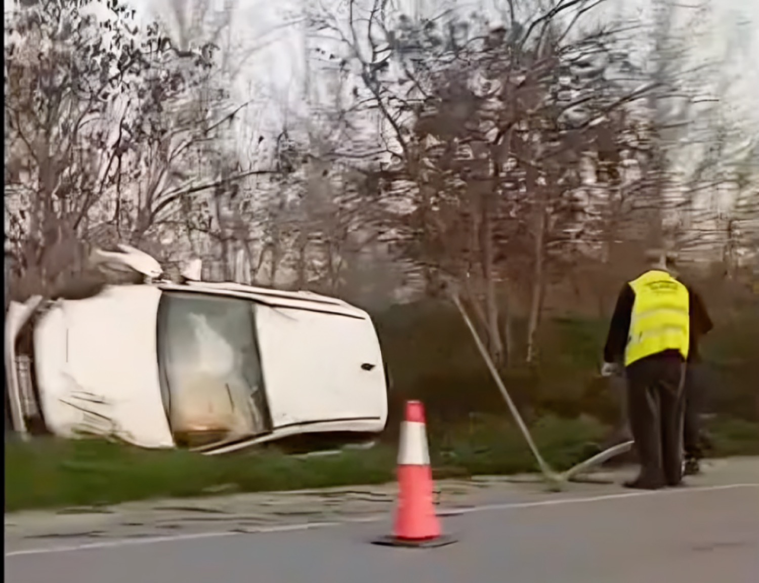 Ένα αυτοκίνητο εξετράπη της πορείας του και ανετράπη όταν η οδηγός έχασε το έλεγχό του κάτω από αδιευκρίνιστες ως στιγμής συνθήκες.